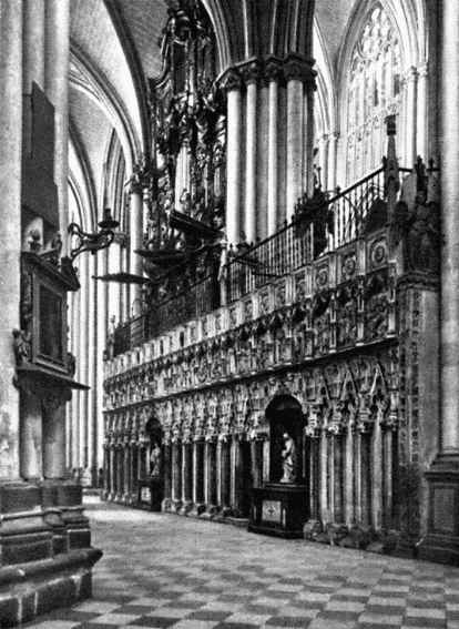 Украшением ограды хоров в соборе Толедо занимались многие мастера. Их имена занесены в документы, но по прошествии веков невозможно определить, кому из них принадлежала та или иная композиция. На мраморной стенке уместилось 50 рельефов, образно повествующих о жизни Иисуса Христа, Девы Марии, владык Испании и библейских героев. Так, на одном из них изображен пастух, указывающий Альфонсу VII дорогу к местечку Лас Навас де Толоса, где в 1212 году королевская армия разбила войска мавров. На другом рельефе воспроизведены вошедшие в историю переговоры Альфонса VI с Абукой Валидом по поводу разрушенной мечети. В отличие от европейских коллег испанские мастера позволяли себе вольности, подобные тем, которые можно увидеть в скульптуре толедского собора. На стенке хоров евангельские легенды чередуются с историческими; кроме того, художники не слишком строго придерживались канонов в отношении деталей, внешнего вида героев и даже их действий, что категорически не допускалось, например, во Франции. Непосвященный мог бы принять за бытовую сцену композицию, где Адам в поте лица копает землю, а Ева – заботливая мать и властная хозяйка – стоит рядом и следит за ходом работы.