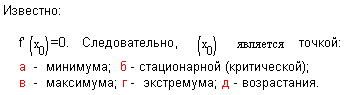 Тип вопроса: 1. Выбор единственно правильного ответа Цена вопроса (баллов): 1 Вариантов ответов: 1. а) 2. б) 3. в) 4. г) Верный ответ: 4 Вариантов ответов: 4 ВОПРОС N 87. Выберите правильный ответ: