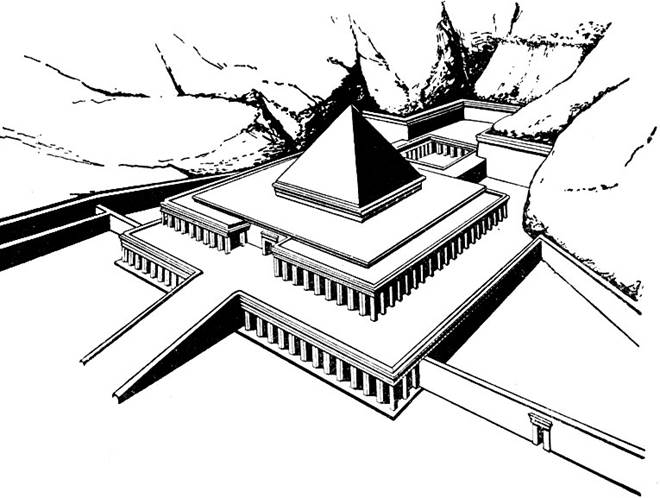 Изменившаяся обстановка отразилась и на положении художественных школ. Ведущее значение приобрели придворные мастерские, где работали теперь лучшие мастера. Местное искусство начало следовать их творчеству, утратив свою передовую роль и вернувшись к традиционным схемам. Не менее значительные изменения произошли и в области архитектуры. Укрепление экономики позволило усилить строительство, видное место в котором продолжали занимать пирамиды. Начавшееся снова увеличение царских усыпальниц завершилось грандиозным строительством Аменемхета Ш в Хавара. Хотя и здесь пирамида была сложена из кирпича и только облицована известняком, однако в ней было много особенностей; так, например, погребальная камера была высечена из глыбы отполированного желтого кварцита. Особенную же известность получил заупокойный храм при пирамиде. Прославившийся в античном мире, этот храм, по мнению Геродота, был даже замечательнее пирамид Древнего царства. Он описан многими античными авторами, считавшими его одной из важнейших достопримечательностей Египта. Раскопки подтвердили эти описания. Храм занимал площадь в 72000 кв. м и состоял из многочисленных залов и молелен, украшенных скульптурами и рельефами. Столь резкое увеличение масштабов пирамидного храма Аменемхете Ш, в корне изменившее взаимоотношение отдельных частей всего комплекса зданий царской гробницы, подчеркивало роль этого храма как центра общегосударственного культа фараона. Это подтверждается и характером скульптур внутри храма и сооружением неподалеку от него двух колоссов Аменемхета III из желтого блестящего кварцита, достигавших вместе с пьедесталами 18 м в высоту. Такое оформление храма полностью отвечало изменившемуся Значению царской власти. Стиль храма отличался строгой монументальностью, чему соответствовали большие плоскости каменных монолитов его перекрытий и ряды монолитных же колонн. Колоннады играли большую роль в оформлении всего- сооружения и явились одной из его особенностей. Зодчие Среднего царства вообще значительно шире применяли колонну, чем их предшественники. Начало этому было положено также мастерами среднеегипетских номов. Увеличение размеров скальных гробниц номархов вынуждало зодчих применять и большее количество колонн. Это Дало толчок развитию портиков и появлению залов, разделенных двумя рядами колонн на три нефа, с более высоким средним нефом. Наряду с ранее возникшими формами колонн — с каннелированными стволами, увенчанными прямоугольными абаками (так называемые протодорические колонны), появились колонны с капителями, украшенными рельефными головами богини Хатор. Постепенно многочисленные и разнообразные колоннады стали характерной чертой храмов, построенных фараонами Среднего царства. Новым в храмовом строительстве было появление и пилона, то есть оформления ворот в виде двух башен с узким проходом между ними. Перед храмом ставились два обелиска, верхушки которых покрывались ярко горевшей на солнце медью. О гражданской архитектуре Среднего царства стало возможным судить после раскопок города около пирамиды Сенусерта II в Кахуне. Массивная стена делила город на две части. В восточной части находился дворец, дома знати, склады, в западной ютились маленькие домики ремесленников. Все здания были кирпичные, Дворец и дома зна