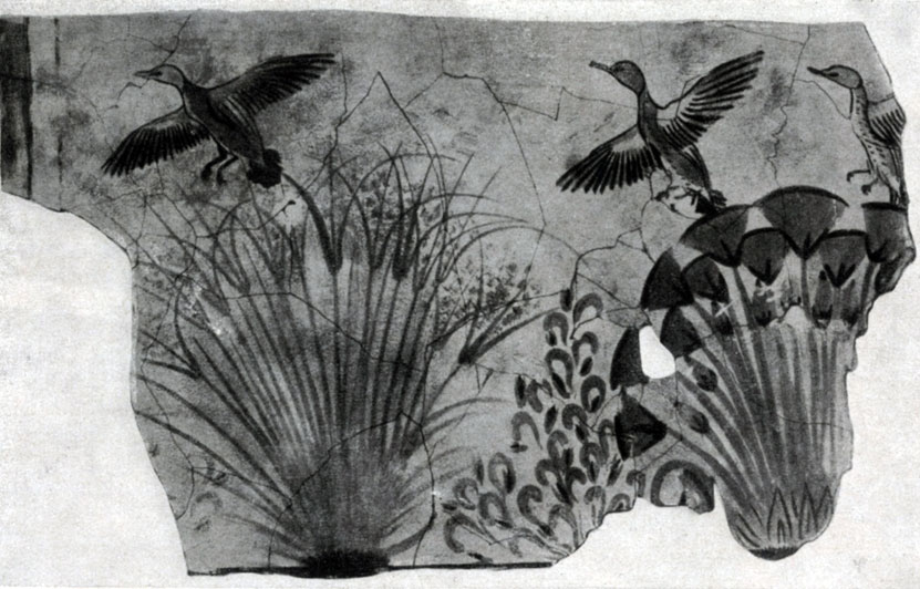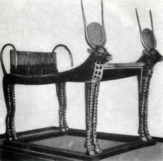 Раскопки Ахетатона познакомили нас и с жилищами знати, которые также строились из кирпича, из камня же делались лишь базы колонн и обрамления дверей. Такой дом обычно стоял посреди обнесенного стеной участка размером около 70x55 м. В стене были два входа - главный и особый для слуг; от главного входа к двери дома вела дорожка. Дом был размером около 22х25 м. Правую его часть составляла центральная комната и две-три другие — приемные. Жилая часть состояла из спальни хозяина с умывальной, женских помещений и кладовых. Все комнаты имели окна под потолком, вследствие чего центральная комната всегда строилась выше других. Стены и полы покрывались росписями. Вокруг дома располагались дворы, колодец, службы, а также сад с прудом и беседками. Дома низшего городского населения значительно отличались от усадеб знати как размерами (10x8 л»), так и полным отсутствием служб и садов. Так же малы были и дома строителей гробниц фараона и знати. Эти дома составляли особый поселок за городом по дороге к гробницам. Поселок был обнесен стеной и занимал участок в 69x69,6 м, на котором вплотную друг к другу было расположено семьдесят четыре дома, разделенных пятью, улицами. В каждом доме имелся небольшой дворик, общая комната, спальня и кухня. Расцвету искусства Ахетатона внезапно был положен конец. Реформы Эхнатона не могли прочно закрепиться, так как рядовые свободные не получили никаких существенных преимуществ, и вскоре после смерти фараона его второй преемник и зять, совсем молодой Тутанхамон, был вынужден пойти на примирение со знатью и жречеством. Последние восстановили прежний порядок, воспользовавшись недовольством внутри страны и неудачами внешней политики, приведшей к потере азиатских владений, что объяснялось жрецами как результат гнева старых богов во главе с Амоном. Однако разрыв с традициями при Эхнатоне вызвал столь решительные сдвиги во всех областях культуры, что полный возврат к старому был уже невозможен. Подобно тому как разговорный язык прочно удержался и в художественной литературе и в деловых документах, так. и в изобразительном искусстве нельзя было вычеркнуть все то новое, что было осознано и разработано мастерами Ахетатона. К тому же эти же мастера были творцами и памятников ближайших преемников Эхнатона. Эти памятники полны отзвуками искусства Амарны и обнаруживают очевидную близость к нему и в круглой скульптуре, и в рельефе, и в произведениях художественного ремесла. Замечательные образцы этого позднего амарнского искусства были найдены в 1922 г. при раскопках гробницы фараона Тутанхамона, которая была не тронута временем и ворами и сохранила множество уникальных памятников, сделанных из ценнейших материалов. Среди них следует прежде всего выделить портретные изображения Тутанхамона, полные свободы и изящества, в особенности пластинку с ларца из слоновой кости со сценой, представляющей Тутанхамона и его молодую жену в саду среди цветов, а также рельеф на спинке деревянного, обитого золотом трона, где фигура Тутанхамона дана в непринужденно естественной позе, абсолютно чуждой каноническим правилам. Прекрасны золотые статуэтки четырех богинь. Их стройные фигурки облегает полупрозрачная ткань легких одежд, сквозь струящиеся линии которой ощущается прекрасное молодое тело. Необычайная мягкость форм в полной мере сохр