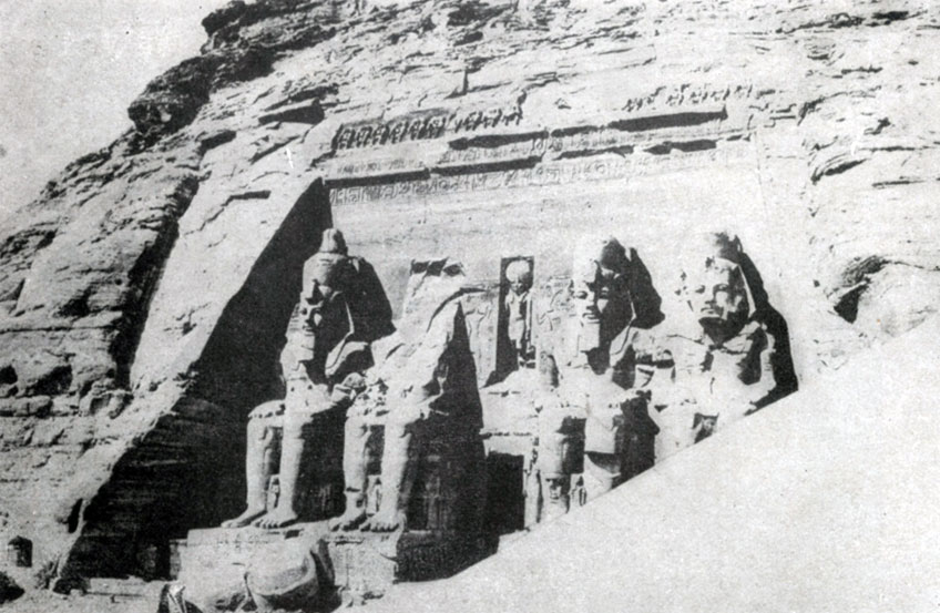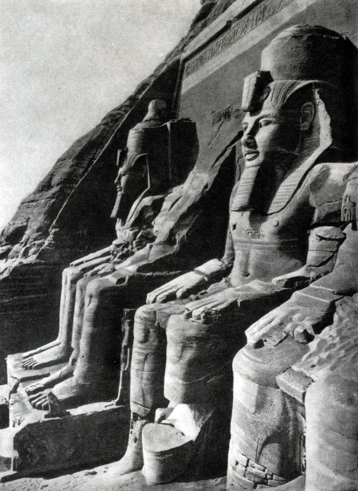 Следы строительной деятельности Рамсеса II сохранились по всему Египту. Среди его храмов за пределами Фив в первую очередь нужно назвать знаменитый храм, целиком вырубленный в скалах Абу-Симбела (нижняя Нубия) и являющийся вообще одним из наиболее выдающихся произведений египетского искусства. Следуя примеру своих предков, которые стремились закрепить покорение Нубии сооружением там не только крепостей, но и храмов, Рамсес II также построил в Нубии ряд святилищ. Однако храм в Абу-Симбеле превзошел все, когда-либо построенное здесь фараонами. Все оформление храма было обусловлено одной идеей — всеми возможными средствами превознести могущество Рамсеса П. Начиная от масштабов святилища и кончая тематикой его декорировки, все было пронизано этой идеей, лучшим воплощением которой явился фасад храма. Он представляет собой как бы переднюю стену огромного пилона, шириной около 40 м и высотой около 30 м, перед которым возвышаются четыре гигантские сидящие фигуры Рамсеса II. Высеченные из скалы и достигающие свыше 20 м в высоту, эти исполины, превосходившие даже колоссы Мемнона, были издалека видны всем плывшим по Нилу и производили незабываемое впечатление всеподавляющей мощи фараона. Образ Рамсеса вообще господствует в храме: над входом высечено скульптурное изображение иероглифов, составлявших его имя, в первом помещении святилища потолок поддерживают колонны с гигантскими статуями царя высотой около 10 м, стены залов покрыты изображениями его побед, и, наконец, в последнем помещении храма, его культовой молельне, среди четырех статуй богов, которым был посвящен храм, наравне со статуями Амона, Птаха и Ра-Горахте имеется и статуя самого Рамсеса. Скульптуры и рельефы Абу-Симбела — дело рук фиванских мастеров. Это видно и по подписям некоторых из них под рельефами и по стилистической близости храма в Абу-Симбеле фиванским памятникам. Фивы вообще издавна посылали своих художников для сооружения и украшения нубийских храмов, и поэтому естественно, что именно фиванским скульпторам было поручено и оформление Абу-Симбела. Фиванские мастера вообще широко привлекались Рамсесом II, как и его отцом, для работ по всей стране. Фиванский зодчий Маи строил храм в Гелиополе, другой фиванец - Аменеминт - храм Птаха в Мемфисе. Фиванские же скульпторы были создателями и рельефов в храме Сети I в Абидосе. Но и деятельность северных художественных школ, особенно Мемфиса и Таниса, расширилась по сравнению с периодом XVIII династии. Рамсес II превратил Танис в свою фактическую столицу; новая роль города — «Дома Рамсеса» — породила бурную строительную деятельность. Для перестройки старых храмов Таниса и сооружения новых требовалось огромное количество каменных плит, колонн, статуй, обелисков, и при этом так срочно, что изготовить все это заново было невозможно. По приказу царя наряду со спешными работами в каменоломнях были широко использованы и части древних зданий, снесенных как в самом Танисе, так и в ряде городов и некрополей северного Египта. Облик «Дома Рамсеса» вскоре настолько изменился, что о его красоте и богатстве стали слагать стихи: «Это прекрасная область, нет похожей на нее, и, подобно Фивам, сам Ра основал ее. Столица, приятная для жизни, поля ее полны всяким изобилием, и [она снабжается] пищей ежедневно. Ее пруды [полны рыб, а ее озера — пти