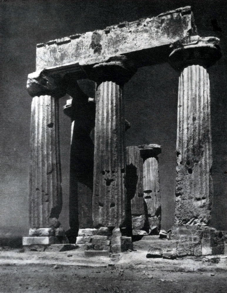 Одним из наиболее совершенных сооружений поздней архаики был храм Аполлона в Коринфе (на Пелопоннесе). Его план такасе еще несколько удлинен (на фасадах 6 колонн, на длинных сторонах - 15); крепкие и тяжелые колонны поставлены довольно часто. Но в этом храме на первый план уже выступает ясность и гармоничность пропорций, общая монументальная строгость и сила архитектурных форм. Храм Аполлона в Коринфе, построенный во второй половине 6 в. до н.э., является произведением зрелого мастерства. Его следует рассматривать как непосредственного предшественника замечательных храмов классического периода. В нем уже с очень большой художественной полнотой выражено нравственное величие и гармония рождающейся новой, демократической художественной культуры Греции. Если в лирике 7 - 6 вв. до н.э. (у Алкея или у Сафо) нашла свое художественное утверждение сила и красота пробудившихся чувств и переживаний человека — гражданина города-государства, то в архитектуре нашли свое выражение идеи величия и красоты родного полиса и единства его наиболее передовых демократических сил. В архаической архитектуре как ионического, так и дорического ордера, строившейся из известняка, нашла широкое применив яркая раскраска. Основным было чаще всего сочетание красного и синего цветов. Раскрашивались тимпаны фронтонов (то есть их треугольное поле под двускатной крышей) и фоны метоп, триглифы и некоторые другие детали антаблемента. Раскрашивалась и скульптура, украшавшая архаические храмы. Раскраска повышала ощущение праздничности облика архитектуры и, кроме того, особенно в дорическом ордере, подчеркивала архитектонику его частей. Ионическая архитектура, в целом развивавшаяся в архаический период в том же направлении, что и дорическая, отличалась от нее большим богатством декорации, большим изяществом и легкостью. Даже старому типу храма «в антах» ионический ордер придал необычайно нарядный облик; так строились еще в 6 в. до н.э. небольшие здания, окружавшие главный храм, например, сокровищница сифнийцев в Дельфах с фигурами празднично одетых девушек (кор) вместо колонн. Храмы Ионии, то есть городов побережья Малой Азии и островов, отличались особенно большими размерами и роскошью убранства. В этом сказалась тесная связь городов-государств малоазийской Греции с культурой Востока. Храмы эти оказались в стороне от основной линии развития греческой архитектуры. Архитектура греческой классики широко разработала все лучшие стороны ионического ордера, но осталась чуждой пышной роскоши этих грандиозных храмов архаической Ионии; эта черта ионической архитектуры получила свое дальнейшее развитие лишь в период эллинизма. Из архаических храмов Ионии наибольшей известностью пользовался первый храм Артемиды в Эфесе, законченный постройкой во второй половине 6 в. до н.э. и достигавший более 100 м в длину. Храм этот был не периптером, а диптером — его колоннада была двойной. Глубокий пронаос состоял из четырех рядов колонн, по две в каждом ряду. Колонны на западном и восточном фасадах опирались на барабаны, украшенные скульптурными рельефами.