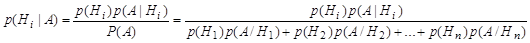 Формулы Байеса. Пусть событие A может наступить при условии появления одной из гипотез H1, H2,.., Hn, образующих полную группу. Если событие произошло, то можно оценить условную вероятность гипотез.