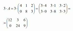 1. Матрица – это таблица чисел, состоящая из m строк и n столбцов. Называется такая таблица матрицей m на n. Каждый элемент матрицы обозначается aij – где индекс i – номер строки, а индекс j – номер столбца. Суммой двух (m×n) матриц А и В называется такая (m×n) матрица С, каждый элемент которой равен сумме элементов исходных матриц, то есть cij=aij+bij. Сложение матриц Сложение и вычитание матриц - одно из простейших действий над ними, т.к. необходимо сложить или отнять соответствующие элементы двух матриц. Главное помнить, что складывать и вычитать можно только матрицы одинаковых размеров, т.е. тех, у которых одинаковое количество строк и одинаковое количество столбцов. Сложение матриц обладает следующими свойствами: 1) А+В=В+А 2) А+В+С=(А+В)+С 3) существует единственная (m×n) матрица О, для которой А+О+А 4) для любой матрицы А существует матрица -А такая, что А+(-А)=О Матрица О называется нулевой матрице. Важно помнить: мы можем складывать матрицы только одинакового размера (m×n)! Если матрицы имеют разную размерность, то складывать их нельзя!!! Умножение матрицы на число: Умножение матрицы на число -процесс, заключающийся в умножении числа на каждый элемент матрицы. Например, пусть дана матрица А: