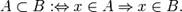 В этом случае A называется подмножеством B, B — надмножеством A. Если Два множества называются равными, если они являются подмножествами друг друга: