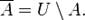 Операция дополнения подразумевает некоторый универсум (универсальное множество U, которое содержит A): Относительным же дополнением называется А\В (см.выше): Мощность множества: | A | Результатом является кардинальное число (для конечных множеств — натуральное). Множество всех подмножеств (булеан):