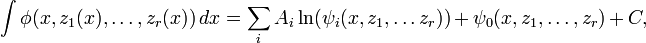 где ψ — алгебраическая функция, zr + 1 — логарифм или экспонента алгебраической функции и т. д. Функции являются алгебраически независимыми и удовлетворяют некоторой системе дифференциальных уравнений вида
