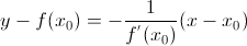 Замечание. Прямая, проходящая через точку перпендикулярно касательной, проведенной к кривой в точке , называется нормалью к кривой в точке . Так как угловые коэффициенты перпендикулярных прямых связаны соотношением , то уравнение нормали к кривой y = f(x) в точке будет иметь вид