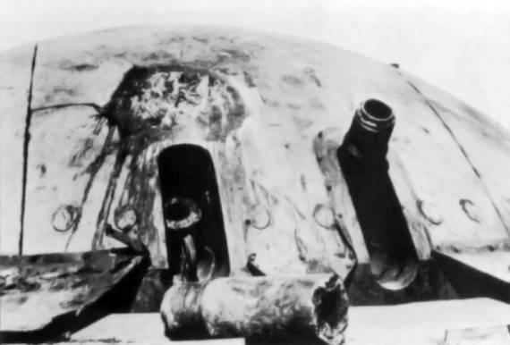 Поднимающаяся башня для двух стреляющих картечью 75‑мм орудий. В середине – амбразура наблюдательного прибора. В другой ситуации эти башни могли без труда расправиться с высадившимися на форт Эбен‑Эмаэль десантниками. В миниатюрной Европе можно было позволить себе построить такой форт, стоимостью в 250 млн. франков (42 млн. долларов – цена авианосца тех лет!). Оснащение такими фортами «линии Сталина» и «линии Молотова» было просто нереально по финансовым соображениям. Ведь таких фортов потребовалась бы целая цепочка на 1000 км линии границы. Атакована в случае войны будет лишь часть фортов, оказавшихся на направлении главного удара противника. Это, кстати, лишний аргумент против пассивной стратегии: большая часть протяженности любой «линии» оказывается невостребованной. Одиночные форты строить бессмысленно. Представим на минутку, что в 1941 г. рядом с Брестом есть форт, аналогичный Эбен Эмаэлю. Что это изменит в картине боев июня 1941 г.? Практически ничего. Брест в реальности был обойден немецкими моторизованными корпусами с севера и юга, и борьбу за него вела пехота. В Бельгии форт Эбен Эмаэль находился в ключевой точке на ограниченном пространстве Бенилюкса. Тезис Лиддел Гарта о том, что Эбен Эмаэль «не был готов к высадке воздушного десанта», не совсем верен. Во‑первых, поверхность внутри зоны обороны форта простреливалась башенными установками 75‑мм орудий. Для зачистки крыши форта от нежелательных гостей были даже разработаны специальные картечные боеприпасы, снаряженные 15‑мм шариками. Залп из обоих стволов такого «дробовика» мог превратить в кровавое месиво как десантников на планерах, так и просто прорвавшуюся на крышу сооружения пехоту. Таких установок было две: «Башня Север» и «Башня Юг». Во‑вторых, пространство форта контролировали два каземата «Ми‑Север» (Mi‑Nord) и «Ми‑Юг» (Mi‑Sud) с пулеметами. «Ми» – это первые две буквы от слова «митральеза» – пулемет. Также форт Эбен Эмаэль имел площадку с четырьмя спаренными установками зенитных «максимов». Кроме того, могли использоваться в качестве средства борьбы с противником на территории форта четыре каземата с 75‑мм орудиями (по три орудия в каземате), предназначавшихся для обстрела переправ. Посадка на территорию боеготового форта планеров или даже одиночных парашютистов была самоубийственным мероприятием. На десант немедленно обрушился бы шквал огня. Меня не удивляет, что в штурмовую группу «Гранит» для высадки на форт немцы отбирали добровольцев, подписывавших соответствующую бумагу. Единственной надеждой немецких парашютистов была внезапность и неизбежные несуразности в процессе перетекания мира в войну. История Эбен Эмаэля даже в мелочах показывает, насколько тяжело постоянно «держать палец на спусковом крючке» в обороне. Зима 1939/40 г., проведенная в сырых и холодных галереях форта, не лучшим образом сказалась на гарнизоне. Многие рядовые и младшие командиры выбыли по болезни, сильно сократив и без того некомплектный гарнизон. Часто называемая цифра в 1300 человек на самом деле округленная штатная численность гарнизона – 1322 человека. В действительности перед штурмом в Эбен Эмаэль находилось лишь 75 % штатной численности – 989 человек. Не лучшим образом на боевом духе защитников сказался тот факт, что форт находился на отшибе, и в свободное от смен время солда