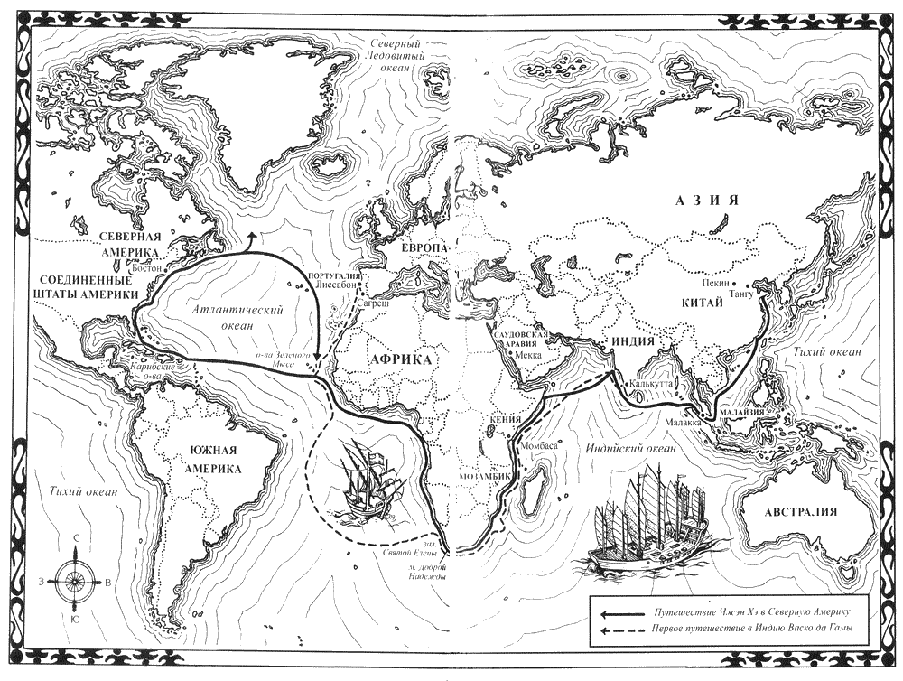 Над Монгольскими степями разносится громовой топот — это мчатся по просторам триста тысяч коней. Земля содрогается под стройным маршем почти миллиона пеших воинов, следующих за кавалерией. Иссохшая почва степей не выдерживает непомерного груза: по ней расползаются мириады трещин. Неожиданно все стихает, и несметное войско расступается. Перед первой шеренгой галопом выезжает величественный всадник в сверкающем желтом одеянии. Это его императорское величество Юнлэ, Сын Неба, правящий на Троне Дракона. Император сознает, что ему не подобает носиться по степям. Следовало бы скрывать свой облик от глаз простолюдинов; простым смертным запрещено взирать на Сына Неба. Но он любит сражения и понимает, что битва против предводителя восставших монголов может оказаться последней. И все же император верит, что боги окажут ему милость, подарив еще одну победу, как они это часто делали в прошлом. Он должен укротить непокорные монгольские войска на поле боя, чтобы потом укротить своих политических недругов, мандаринов, в собственной империи. Ненавистные мандарины уже давно шепчутся, что монгольское восстание — признак того, что боги отвернулись от императора и его грандиозных планов. Император должен победить бунтарей и доказать неправоту мандаринов, прежде чем его мягкотелый сын и наследник Чжу Гаочжи начнет прислушиваться к пересудам врагов и откажется от императорских проектов, взойдя на Трон Дракона. Стареющий император не может допустить подобного. Он должен защитить дорогие его сердцу святыни, среди которых Великая стена и Запретный город;[1]ведь именно они заявляют всему миру о могуществе Китая. Юнлэ должен сохранить в целости обширную империю, так тщательно им восстановленную после многих веков упадка. Но самое главное, он должен не допустить развала любимого флота, не сравнимого по своим размерам и оснащению ни с одним флотом мира, этому флоту еще предстоят дальние походы. Боги знают, что он всю жизнь стремился только к одному — укрепить в народе веру в собственную силу после многих лет чуждого монгольского господства. Он должен поставить монгольских бунтарей на колени перед собой, чтобы его славное наследие не ушло к политическим интриганам, когда Сыном Неба станет Чжу Гаочжи. Звучат боевые горны, сотрясая воздух оглушительным звуком. Император опускает ладонь на эфес меча, готовый сразиться бок о бок со своими воинами как простой смертный. Он жаждет победы, но если ему суждено умереть, то он умрет в этих степях, а не как птица в клетке, сидя в Запретном городе. За спиной императора раздается быстрый топот копыт, трубный зов обрывается. Император удивлен, что кто-то посмел нарушить торжественность момента. Он оборачивается и видит генерала, который спешивается и опускается перед ним на колени. — Ваше императорское величество, вам не подобает возглавлять войска. Умоляю о милости, позвольте мне повести воинов в атаку против мятежных монголов. Император в упор смотрит на генерала, и его легендарные черные глаза вспыхивают гневом. — Не забывай, что я Сын Неба. Я поеду впереди людей. Под его взглядом генерал ретируется. Император оглядывает поле боя. Он жалеет только об одном, что его преданный советник, адмирал Чжэн Хэ, не может разделить с ним эти минуты, которые вполне могут оказаться последними. Но Чжэн действительно не мож