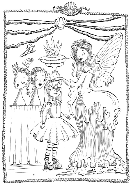 – Клянусь прыгучей медузой! – пробормотала Аква, раскрыв рот от изумления. – Креветки полосатые, – тихонько пискнула Океана. – Так вот оно какое, королевство морских фей под Водоворотным Желобом, – завороженно проговорила Марина, глядя на огромный хрустальный купол у них над головами. Сквозь него было ясно видно, что они находились глубоко под водой, и сквозь прозрачный потолок удавалось разглядеть воронки водоворотов высоко над ними. Опорой чудесному куполу служило естественное кольцо из камня, а внутри него находился роскошный сад, какого они никогда прежде не видели.