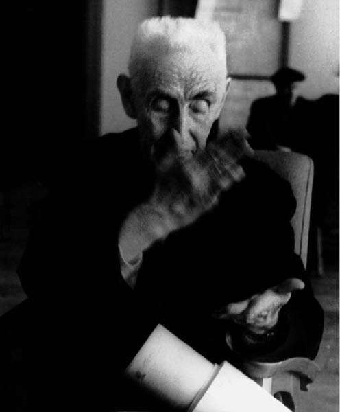 Вот о чем‑то рассказывает старик. Снимок мне особенно дорог, хотя ничем не блещет и никакого образа зрителю не несет. Конечно, до тех пор, пока неизвестно, кто этот старик и что означает его жест. Это Петр Оцуп, знаменитый фотограф, автор наиболее известных портретов Ленина, человек, сумевший снять разгон июльской демонстрации в Петрограде в 1917 году (снимок вошел во все учебники истории), осаду Зимнего дворца; он автор и множества других бесценных фотодокументов из истории революции и Гражданской войны. Более сорока тысяч оригинальных негативов оставил Оцуп потомству. Я увидел его в вестибюле редакции «Правды» 22 апреля 1962 года. В тот день на первой странице газеты был напечатан снимок Оцупа. Поскольку редакция меня послала в Москву с заданием подготовить фотоочерк к пятидесятилетию «Правды», я подумал, что портрет одного из ее старейших фотокорреспондентов будет очень кстати. И действительно, 5 мая 1962 года Петр Адольфович Оцуп был награжден орденом Ленина. К слову сказать, вычеканенный на ордене профиль Ленина сделан по снимку Оцупа. Мою робость при встрече с живым классиком фоторепортажа представить нетрудно. Но во время фотосъемки ведь нужен тесный контакт. И Оцуп, видя мою скованность, пошел навстречу. Он заговорил со мной, как равный с равным. В частности, сказал, что так и не смог привыкнуть к малоформатным пленочным аппаратам типа ФЭД или «Зенит», что даже в последние годы ответственные репортажи снимал преимущественно той же камерой, которой пользовался в Русско‑японскую войну. – А как же с оперативностью? – спросил я несмело. Оцуп улыбнулся, на глазах помолодел и с истинно профессиональной гордостью рассказал, как в памятное утро 7 ноября 1910 года, когда в Москве стало известно о кончине Толстого, он был первым фоторепортером на станции Астапово. Сделав в слабо освещенной комнате, где лежал Лев Николаевич, несколько снимков, он тут же помчался назад в Москву, проявил негативы в специальном, чуть подогретом проявителе, быстро ополоснул их после фиксажа, затем, ребром ладони смахнув лишнюю воду, с сырых негативов сделал отпечатки для клише. Забыв о своей робости, я, слушая, снял несколько кадров – как раз в тот момент, когда Оцуп, оставив трость, энергичным жестом показал, как именно он смахнул в то утро воду с мокрого негатива. Жаль, не было у меня портативного магнитофона. Такая запись, несколько фотографий – и получился бы неповторимый киносюжет. Неповторимый потому, что вскоре старейшего советского фотопублициста Петра Оцупа не стало. Документальные кадры, даже самые обыкновенные, как вино, с годами зреют и становятся только ценнее.