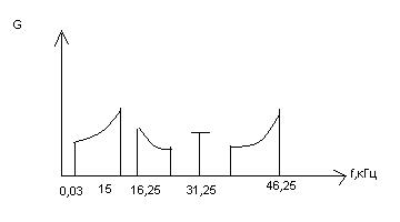 Для підвищення завадостійкості сигналів і лівого і правого в області верхніх частот, де рівень спектральних складових менше наж на середніх частотах з допомогою RC- ланцюжка вводяться попередні частотні спотворення. Спектр при цьому має вигляд:
