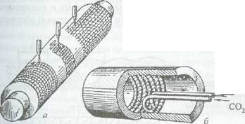 Рис. 3.78. Схемы наплавки в защитном газе цилиндрических наружных (а) и внутренних (б) поверхностей