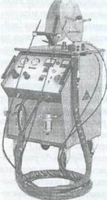 Вследствие большой скорости частицы достигают поверхности детали в жидком или пластическом состоянии, внедряются в эту поверхность и прочно сцепляются с нею, образуя металл изацион-ный (напылённый) слой. Общий вид электродугового металли-затора и ручной электродуговой пистолет показаны на рис. 3.83. В настоящее время в технике наиболее широко используется плазменное напыление, преимущества которого следующие: возможность напыления тугоплавких материалов, высокая производительность при напылении керамических материалов, возможность напыления порошковых материалов. При плазменном напылении поверхность не следует перегревать выше 300 °С, так как при этом возникают внутренние напряжения, способные привести к разрушению покрытия. Для предупреждения перегрева поверхность около места напыления охлаждают сжатым воздухом, поток которого направляют на покрытие с помощью дополнительного кольцевого сопла, окружающего мундштук горелки. Плазменное покрытие применяют, как правило, для нанесения жаропрочных покрытий в ракетной технике. Для повышения прочности сцепления керамических покрытий с основным металлом их напыляют на подслой. При напылении оксида алюминия в качестве материала-подслоя используют нихром. Плазменные покрытия используют также в качестве электроизоляционных, например при изготовлении МГД-генераторов, теплообменников, тензодатчиков, дисков электропил.