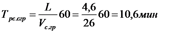 Время движения с грузом, время движения без груза и на время работы на остановках в течение смены определяют по формулам: