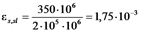 где RS – расчётное сопротивление арматуры растяжению, для стали А400 RS = 350 МПа; ES – модуль упругости арматуры, для стали А400 ES = 2∙105 Мпа.