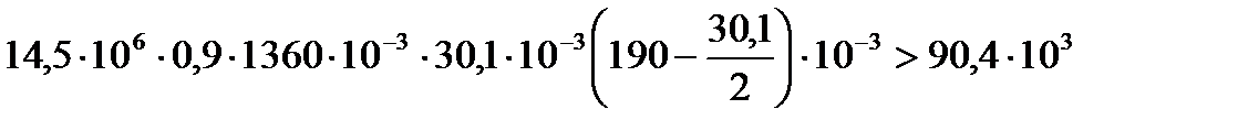 где Rb – прочность бетона на осевое сжатие, для В25 Rb = 14,5 МПа; γ b 1 – коэффициент, учитывающий условия работы, при продолжительном действии нагрузки γ b 1 = 0,9;