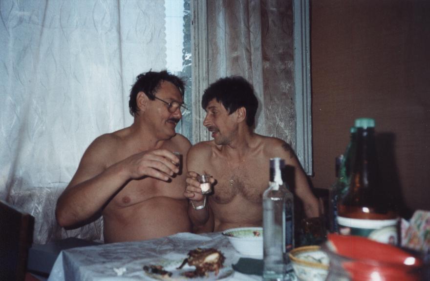 У «Иконостаса» Там же у бильярда После приезда первое что сделал – отослал посылку другу Васе Кудрину (релейщику нашего Узла связи) под Новосибирск: бутылку 0,7л «Гавана Клуб» в жестяном футляре экспортного исполнения, майку и брелок с символами Кубы, сигару, книжку-самиздат своих стихов «От школы – до Армии и так далее», копии DVD c дельфинарием, СD с традиционной и современной кубинской музыкой, фотки и видеокассету, в которой я, начиная с аэропорта, далее в начале почти каждого эпизода кубинского вояжа, как пьяный попугай, произношу: «Васька…Сява…Ребята…Я на Кубе…Отдыхаю тут…Пью…За всех вас!!!», потом у меня першит в горле, наворачиваются слезы и я пью водку из стакана. Без закуски…. Вася после мне позвонил, пьяненький, смеялся, благодарил за подарки, говорил, что всё делал по моему сценарию, правда сосал ром неделю, а на Кубу поехать не сможет по семейным и финансовым обстоятельствам. Я тогда, не теряя надежды и исполненный возрожденного пост-дембельского энтузиазма, нахожу в своём армейском блокноте имеющиеся адреса однополчан-кубашей и рассылаю им письма, в том числе на Украину и в Белоруссию. Вот выдержки: Здравствуйте, дорогие мои «кубинцы»! Привет вам из Костромы от старшины и механика телеграфной ЗАС Сани Хохлова! Пишу всем разом по адресам, оставленными вами при расставании, и надеюсь, что получите это письмо. А если кто-то сменил место жительства, хотелось бы чтобы люди, прочитавшие это письмо, переслали бы его на ваши новые адреса. Заранее им буду благодарен, так как они смогут помочь нашей встрече 30 лет спустя или хотя бы наладить переписку…. Да, ребята! В ноябре-декабре 2008 года будет юбилей окончания нашей совместной службы на Кубе! Ребята! Живём один раз! Наплевать на деньги! Давайте через меня спишемся, созвонимся и встретимся на Кубе 30 лет спустя! Мне вас всех так там не хватало. Представляете, как это будет здорово. Мы там поднимем на уши всё Варадэро! Кубинцы нас всё ещё любят! Отдых будет незабываемый!....