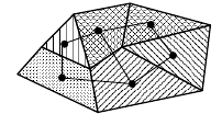 Рис. 2. Области однородности с графом (пространственной моделью) объекта Задача анализа СФЗ состоит в том, чтобы определить наличие критических путей (таких путей, где вероятность своевременного обнаружения P ОБ будет больше минимально заданной вероятности обнаружения P min). Поиск критических путей производится по следующему алгоритму: ЭТАП 1: По модифицированному алгоритму Дейкстры находятся все пути из множества точек начала движения N = (n 1, n 2,..., n i,..., n k) (областей однородности, расположенных на периметре объекта) к множеству целевых точек С = (с 1, с 2,..., сj,..., сm) (областей однородности, в которых находятся критические элементы объекта). Получаем набор векторов вида (3): v = (ni...ma...сj). (3) ЭТАП 2: Расчет производим согласно оптимальной стратегии действий нарушителя. На каждом векторе v (3) находим КТО – точку, в которой