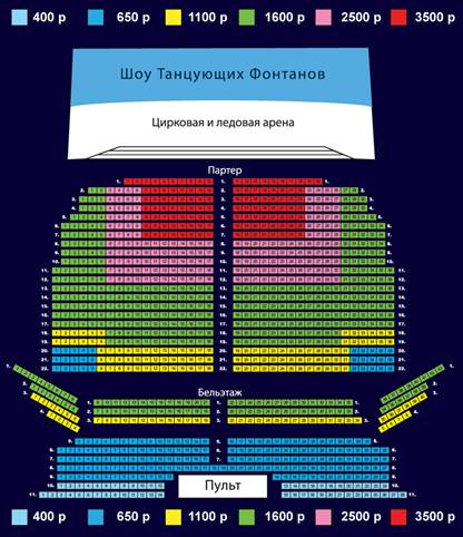 | | | Цирк Танцующих Фонтанов Аквамарин (м. Пролетарская) Схема зала и цены