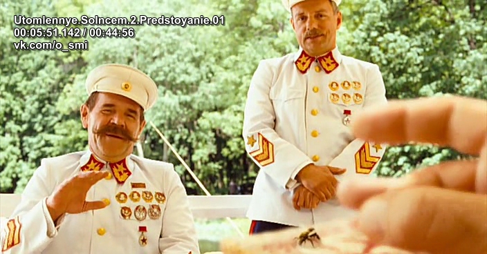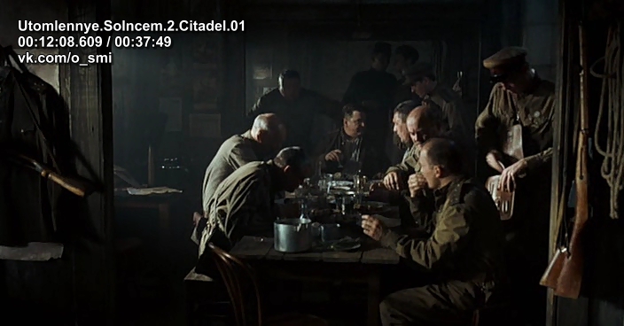 По мнению Михалкова так выглядит типичное советское командование – в усмерть пьяные генералы, полковники и майоры. Бухают все. Кто-то на ногах не стоит, кто-то поет «Ой, мороз, мороз». Вы можете подумать, что в фильме не говорится, что все такие, а это лишь единичный случай. Но откуда нам это узнать? Единственный раз, когда показано советское командование – оно показано таким. Такой «правдивый» образ у зрителя и сложится, откуда другому взяться?