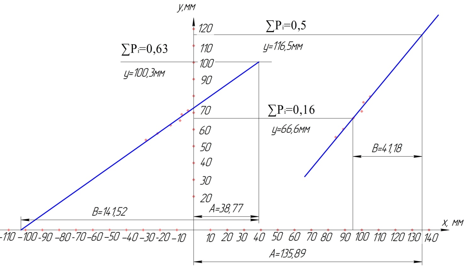 Так как накопленная опытная вероятность точек с порядковыми номерами 1,00; 2,00; 3,00; 4,00 меньше 0,1…0,15, то эти точки не принимаем за расчетные.