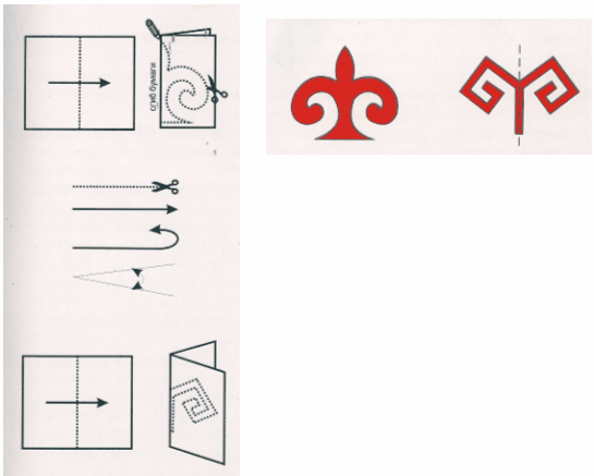 Способы создания казахского национального орнамента. Вырезание орнамента на бумаге, сложенной в один раз Орнамент "мүйіз" - рог