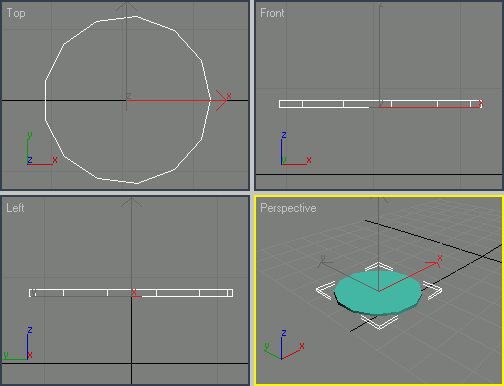 Смоделируем тарелку при помощи стандартного примитива Cylinder (Цилиндр). 1. Создайте в окне проекции стандартный примитив Cylinder (Цилиндр) со следующими значениями параметров: · Radius (Радиус) - 30, · Height (Высота) - 2, · Height Segments (Количество сегментов по высоте) - 1, · Cap Segments (Количество сегментов в основании) - 1, · Sides (Количество сторон) - 13. · Назовите созданный объект Tarelka02 и сохраните его в этом же файле.