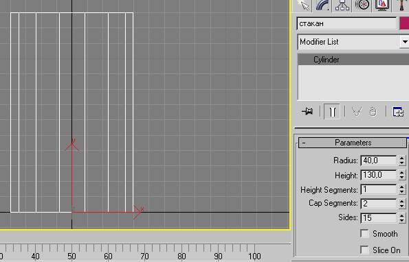 · radius – 40, · height – 130, · height segments – 1, · cap segments – 2; · sides – 12, и снимите флажок smooth.