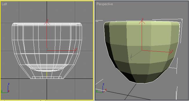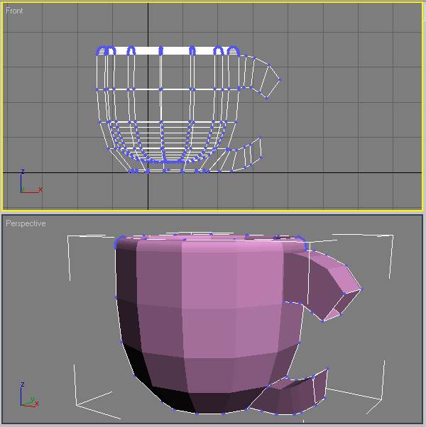 1. Переключитесь в окно Front (Вид спереди). 2. Увеличьте масштаб, используя инструмент 3. На панели Create (Создать) щелкните по кнопке 4. Нарисуйте сечение кружки как на рисунке 1.