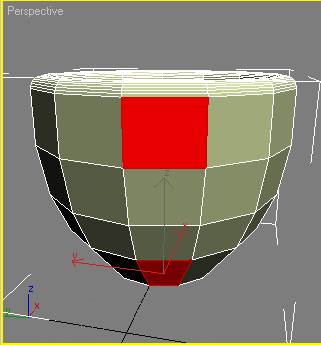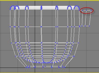 Рисунок 7 8. Создаем донышко как показано на рисунке 8. Выбрав отмеченные полигоны, применим к ним Extrude. И теперь что бы края донышка при сглаживании были острыми, выберем грани применим к ним Chamfer с величиной 1.