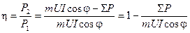 4-13. Потери и коэффициент полезного действия Потери в синхронной машине состоят из: 1. электрических потерь в обмотке статора; 2. магнитных потерь в стали статора; 3. добавочных потерь в полюсных наконечниках или в поверхностном слое бочки ротора, вызванных пульсациями поля вследствие зубчатости внутренней поверхности статора и высшими гармоническими поля статора; 4. механических потерь на трение в подшипниках и вращающихся частей о воздух или другой газ, охлаждающий машину; 5. потерь на возбуждение, причем к последним относятся не только потери в обмотке возбуждения, но и потери в возбудителе, если он посажен на один вал с синхронной машиной, и в регулировочных реостатах; 6. добавочных потерь при нагрузке, вызванных полями рассеяния статора. Перечисленные потери в сумме (∑ Р) составляют небольшую долю от номинальной мощности машины. Эта доля уменьшается с ростом ее мощности. Коэффициент полезного действия (к.п.д.) синхронной машины определяется: для генератора по формуле