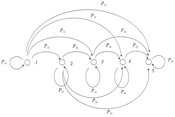 Рис.1 Граф состояний процесса профессиональной подготовки операторов (для 5 состояний)