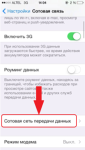 Далее выберите пункт «Сотовая сеть передачи данных»