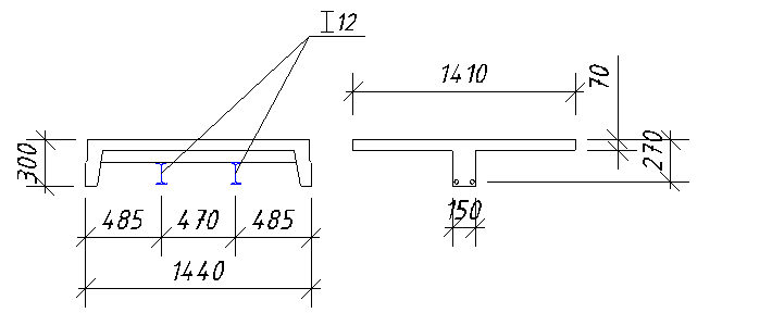1.2.Подбор метода усиления: Усиливаем плиту установкой двух двутавров в растянутой зоне.