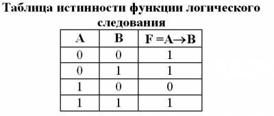 Составное высказывание, образованное в результате логического сложения (дизъюнкции), истинно тогда, когда истинно хотя бы одно из входящих в него простых высказываний. В русском языке операция дизъюнкции выражается союзом «или». 3. Логическое отрицание (инверсия) В русском языке операция инверсии образуется присоединением частицы «не» к высказыванию. 4. Логическое следование (импликация) В русском языке операция импликации выражается оборотом речи «если…, то…». 5. Логическое равенство (эквивалентность) В русском языке операция эквивалентности выражается оборотом речи «…тогда и только тогда, когда…». Таблицы истинности Для каждого составного высказывания (логического выражения) можно построить таблицу истинности, которая определяет его истинность или ложность при всех возможных комбинациях исходных значений простых высказываний (логических переменных). При построении таблицы истинности целесообразно руководствоваться определенной последовательностью действий.
