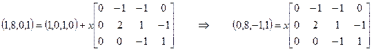 Для определения того, является ли маркировка (1, 8, 0, 1) достижимой из маркировки (1, 0, 1, 0), имеем уравнение