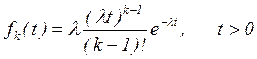 Потоки Пальма или потоки с ограниченным последействием являются обобщением потоков элементарных событий. Потоком Пальма называется поток, в котором промежутки времени между двумя соседними событиями представляют собой независимые случайные величины, распределенные по одному и тому же закону. Частным случаем потоков Пальма являются простейшие потоки, в которых интервалы между соседними событиями распределены по показательному закону. Если интервалы между событиями подчиняются гауссовскому распределению, то такие потоки называются нормальными. Очевидно, что для регулярного потока закон распределения выражается d -функцией. В теории массового обслуживания широко используются потоки Эрланга. Они образуются из простейших потоков путем применения к ним операции "просеивания". Эта операция заключается в том, что из простейшего потока удаляется некоторое число точек по определенному правилу. Если удаляются точки через одну, т.е. остается каждая 2-я точка, то поток Эрланга называется потоком 2-го порядка (Э2). Если удаляются две точки подряд и остается каждая 3-я точка, то получается поток Эрланга 3-го порядка (Э3). Если удаляются (k -l) точек подряд, а остается каждая k -я точка, то поток Эрланга называется потоком k -го порядка (Э k). Очевидно, что простейший поток является потоком Эрланга 1-го порядка. Можно показать, что функция распределение промежутков времени между соседними событиями имеет вид