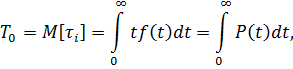 Наработка на отказ – отношение суммарной длительности работы (наработки) изделия к числу отказов, возникших за этот период, т.е. средняя продолжительность безотказной работы изделия. Наработка на отказ численно равна площади над кривой Для экспоненциального закона надежности наработка на отказ выражается как:
