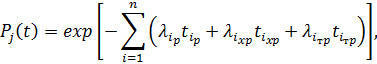Проектный расчет привода проводят в двух вариантах: 1) с использованием статистических данных интенсивностей отказов или наработок на отказ, полученных в процессе испытаний приборов-аналогов; 2) по результатам статистических данных интенсивностей отказов или наработок на отказ, полученных в процессе испытаний и эксплуатации приборов-аналогов только данного предприятия. Это обусловливается тем, что каждое предприятие имеет значительную преемственность в проектировании, технологии изготовления и методах контроля, структуре производства, специальной оснастке и испытаний. Такой подход позволяет объективно контролировать и сравнивать показатели надежности, полученные расчетным путем (1-ый вариант) и с учетом особенностей создания и эксплуатации (2-ой вариант). Расчетная формула вероятности безотказной работы функционально законченной j-той сборочной единицы имеет вид: