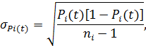 Среднее квадратичное отклонение вероятности безотказной работы элемента с учетом статистических данных: