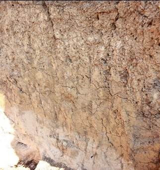 Рис.20. Лесовидні суглинки (фото Піндак Д.) 1- лесовидний суглинок Крім типових льодовикових процесів, на території дослідження зустрічаються і флювіогляціальні процеси та форми рельєфу, зокрема стрічкові глини – відклади прильодовикових озер, що складаються з тонких шарів тонкозернистого піску і глини – продуктів осадження льодовикових мікровключень. Шаруватість зумовлена нерівномірним привносом уламкового матеріалу в різні сезони року (піщанисті влітку, глинисті взимку). Піски і глини залягають, утворюючи річні шари, що називаються стрічками, потужністю від часток мм до декількох см; товщина стрічок зумовлена змінами погоди і інтенсивністю танення льодовика. Шляхом підрахунку цих стрічок можна визначити тривалість часу утворення всієї товщі глин.