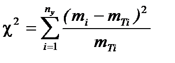 где nу – число интервалов в укрупненном статистическом ряду, mi –опытная частота, mTi – теоретическая частота.