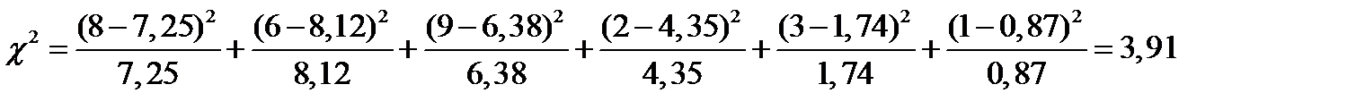 Критерий согласия Пирсона: -при законе нормального распределения:
