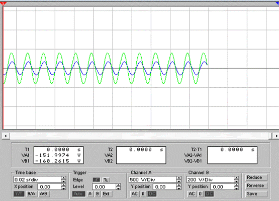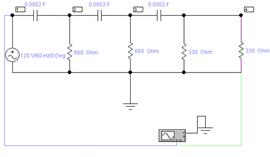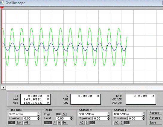 Рисунок 3 –АЧХ і ФЧХ в ElectronicsWorkbench 1.4. Побудова вхідних і вихідних осцилограм при гармонічній вхідній дії різної частоти за допомогою віртуальних пристроїв в ElectronicsWorkbench: