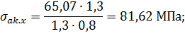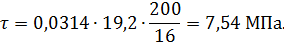 Касательные напряжения среза в сечениях между бобышками и головкой шатуна: