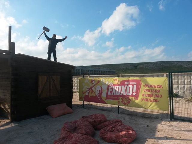 А мы тем временем, остудив пламя революций внутри, приступили к подготовке к сезону. Кайтстейшн отстоял зиму в лучшем виде, несмотря на шторма и ветра, и лёд. Никто не влез в закрытое помещение (даже не попытался), не написали ХУЙ маслянной краской, не насрали кучи, не подожгли покрышку)) спасибо ребятам Щёлкино!! Культурный у нас городок (несмотря на то что Россия;) Первым делом поставили флаги на ключевых местах. Потом постелили пол на второй этаж, убрали забор (теперь есть новый), развесили пару баннеров. Территория отеля тоже приводится в порядок: опять же новый забор, убрали лес, почистили лужайки, построили админздание и ресепшн. Саня работал)) хотя говорит северовосток не прекращался, сдувая с крыши. Татарка прекрасна!! Встретила нас лёгким бореем, к вечеру завернуло на южак. Небо, мыс, море, пляж – всё на месте, всё расставлено самым лучшим образом, для жизни и счастья)) может кому-то скучно так жить, но мне в самый раз, вроде как об этом и мечтали в детстве! Вобщем всё путём)) ждём друзей!