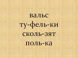 3.Поиск способов решения проблемы. Самостоятельная работа с текстом. - Хотите узнать, какие танцы были на балу? Обратитесь к тексту и найдите названия танцев(слайд№5)