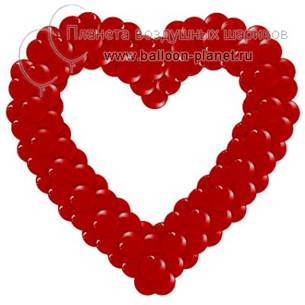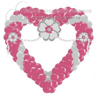 Сердце из шаров №8 Большое сердце из воздушных шаров красного цвета украшенное цветами из шаров. Цена: 1 790 руб.Особенности: Сердце имеет размер около 160*130 см.Цвет шаров может быть любой на ваш выбор. Количество шаров в сердце около 230 шт.